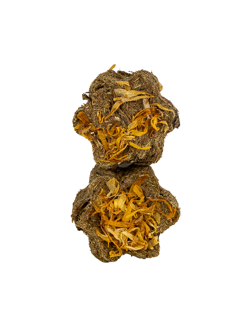 Farmerki to duże ciacha w formie okrągłych kolb. Złożone w całości z ziółek i kwiatów, spojone bezpiecznymi substancjami klejącymi – nic tylko podawać królikom i rozkoszować się tym, jak chrupią. W opakowaniu znajdziesz cztery pyszne kolby. Każda z nich waży około 35 gramów, więc są wyjątkowo lekkie jak na tego typu produkt.