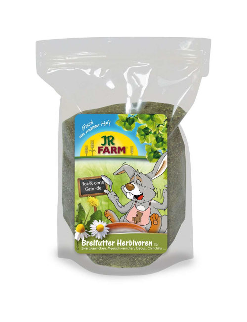 Bogata w białko i minerały karma JR Farm Breifutter Herbivoren służy do stawiania na nogi królików chorych, odmawiających jedzenia czy po zabiegach chirurgicznych.