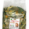 Skład: marchew, burak czerwony, korzeń pietruszki, sianko z pierwszego pokosu z kaszubskich łąk, granulat ziołowy z fitobiotykiem, kwiat nagietka