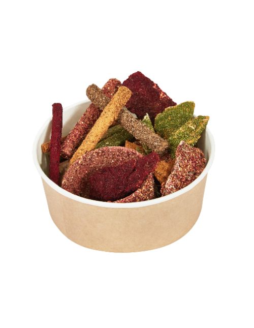 Skład: kora brzozy, marchew, pasternak, brokuł, burak, kolendra, natka pietruszki, skrobia.