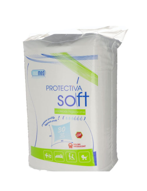 Podkład chłonny Protectiva Soft ma trzy warstwy: wierzchnią delikatną włókninę, miękką pulpę celulozową z granulkami absorbującymi wilgoć oraz warstwy spodniej nieprzepuszczającej wilgoci.