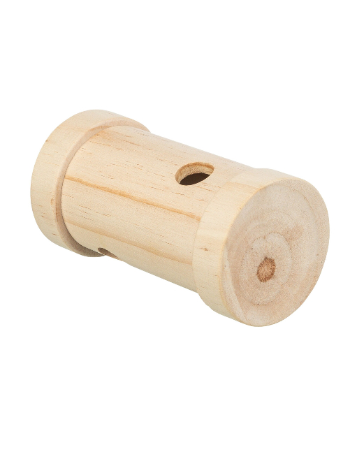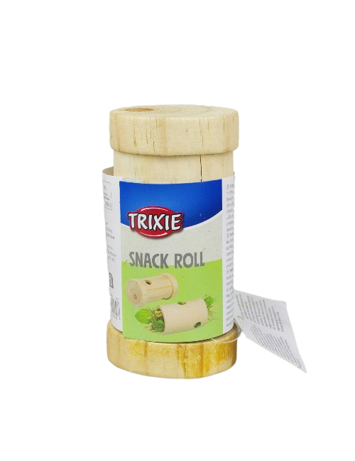 Snack Roll to drewniana rolka do turlania. Można do niej wsypać drobne przysmaki, które będą wypadały przez umieszczone na bokach otwory, lub włożyć sianko. Królik kulając lub rzucając zabawką będzie miał możliwość, aby dobrać się do przysmaków wewnątrz.